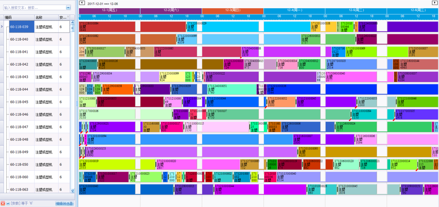 通过导入云筹优化APS自动生产排程系统,客户在设备效率、交货期管理等方面都得到极大改善,冲压机的生产计划快速自动生成,解决了冲压车间的排产难,交期长,准交率低计划排程难题,冲压排程效果如下图所示: